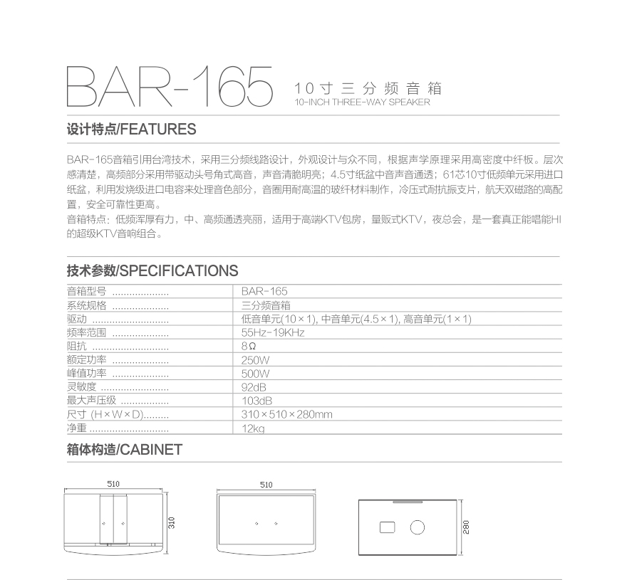 型号:BAR-165 KTV音箱